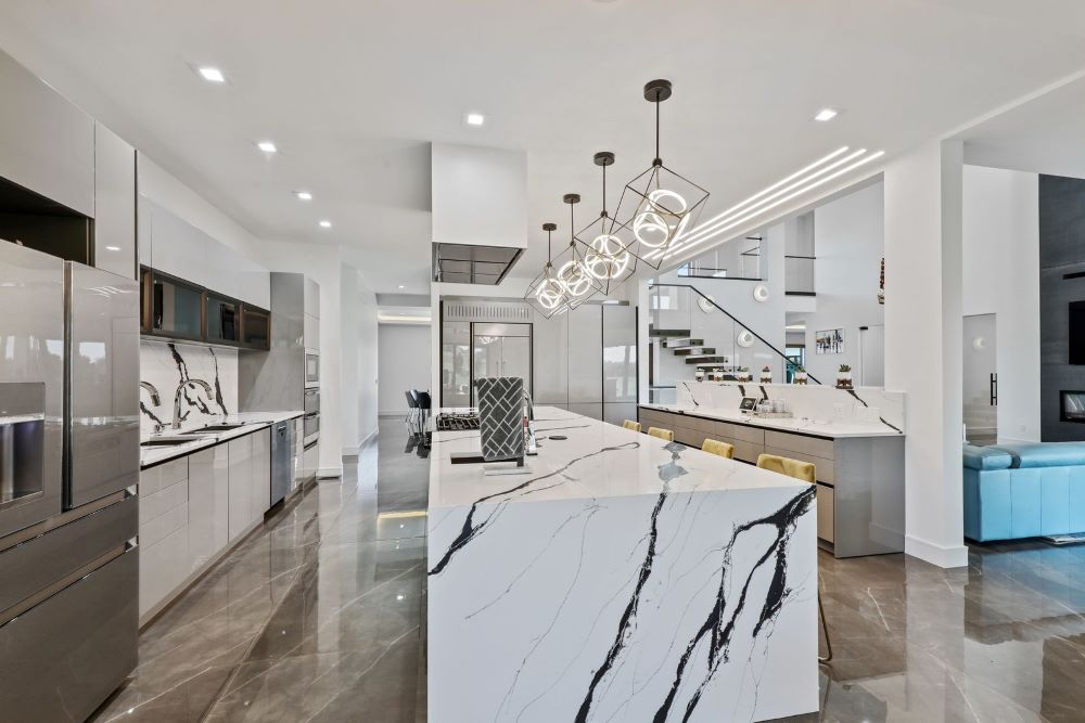 Located in Kansas City, USA, the modular kitchen and wardrobe project for Mr. Sanjay Koshiya reflects a harmonious fusion of modern aesthetics and functional design, meticulously executed by Plezza. The base cabinet units in glossy UV Farbe lacquered finish provide a sleek and contemporary touch, while brown-tinted glass shutters add an element of subtle sophistication. The use of Fenix and Glaks finishes further elevates the design, ensuring a seamless integration of form and function.