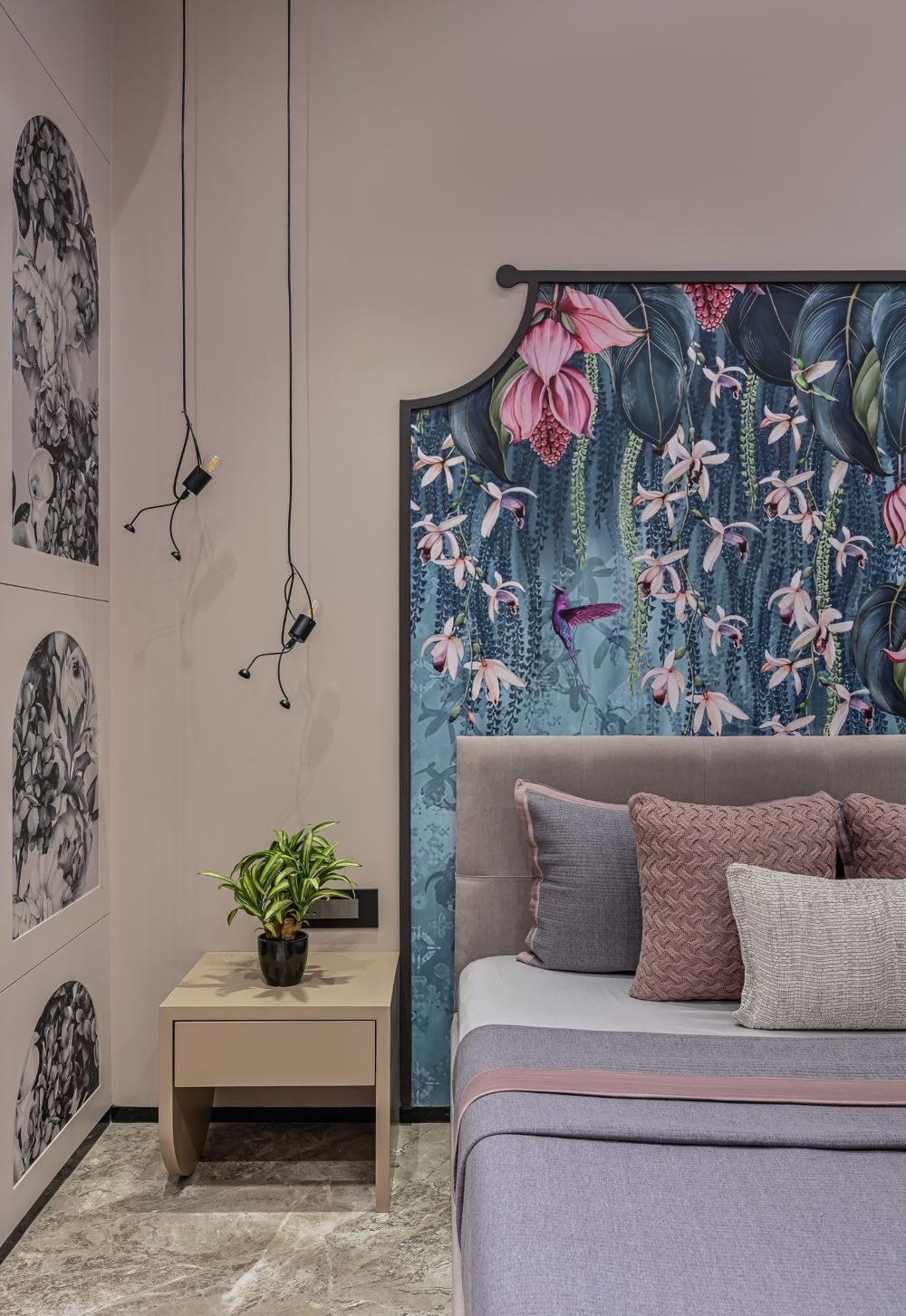 This modular bedroom furniture project for Mr. Vrath Seth, crafted by Ar. The InteriorWorkshop in Ahmedabad, spans approximately 3500 sq. ft. and exemplifies a perfect blend of comfort, style, and modern design. The bed, finished in luxurious fabric, offers a cozy and inviting centerpiece for the room, combining softness with elegance. Complementing this, the wardrobe features back-painted glass in a sleek matt finish, adding a contemporary and sophisticated touch while ensuring a smooth, reflective surface that enhances the room’s spaciousness and light.